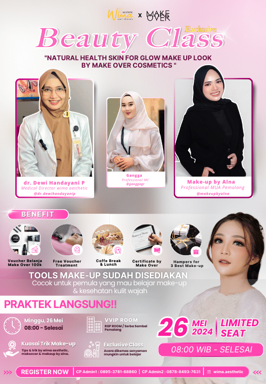 Beauty Class Wima Aesthetic x Make Over & Alna akan diadakan di: