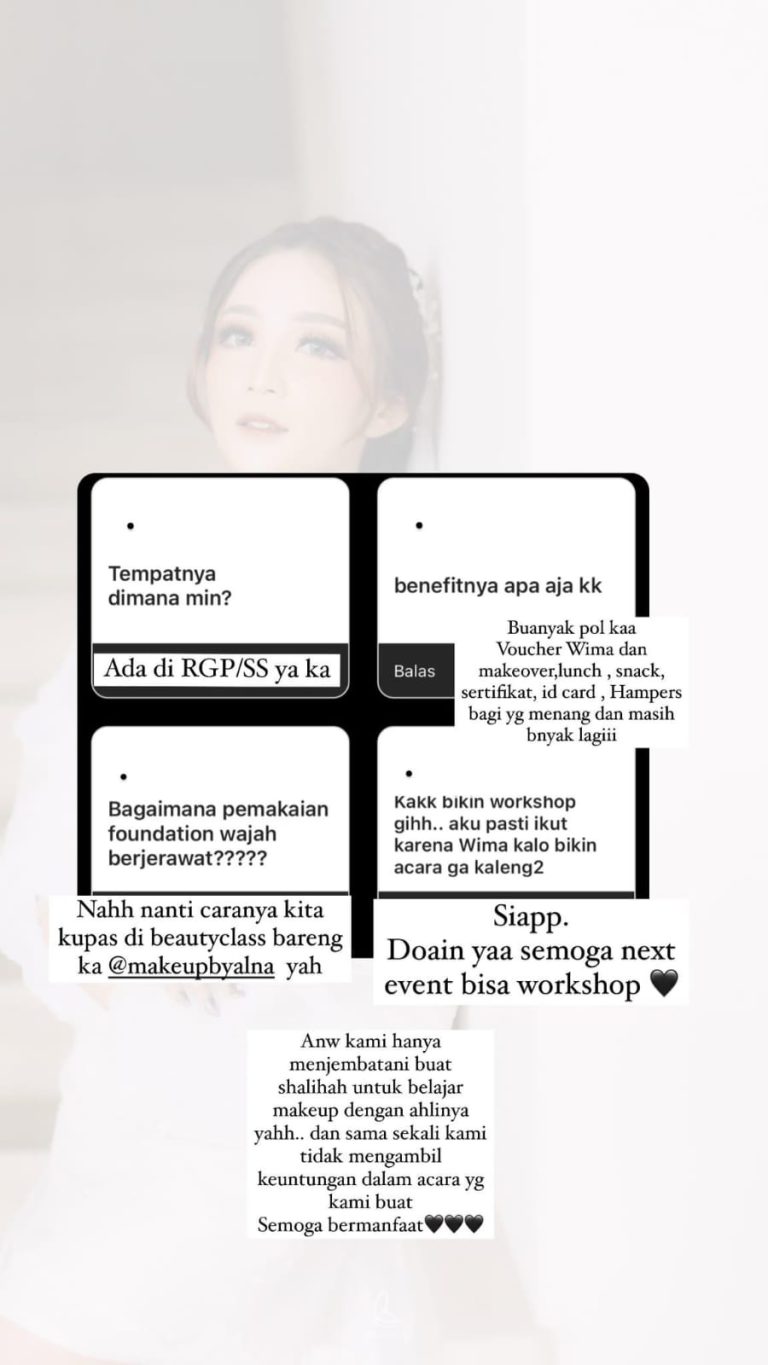 Pendaftaran bisa melalui akun instagram @wima.aesthetic atau bisa menanyakan langsung via Whatsapp ke nomer berikut: